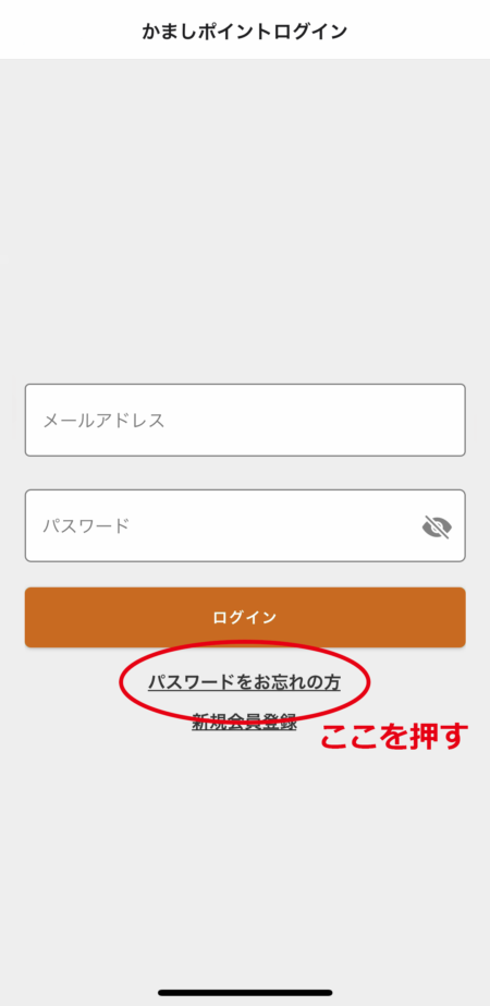 - ログイン画面にある「パスワードをお忘れの方」のリンクをクリック